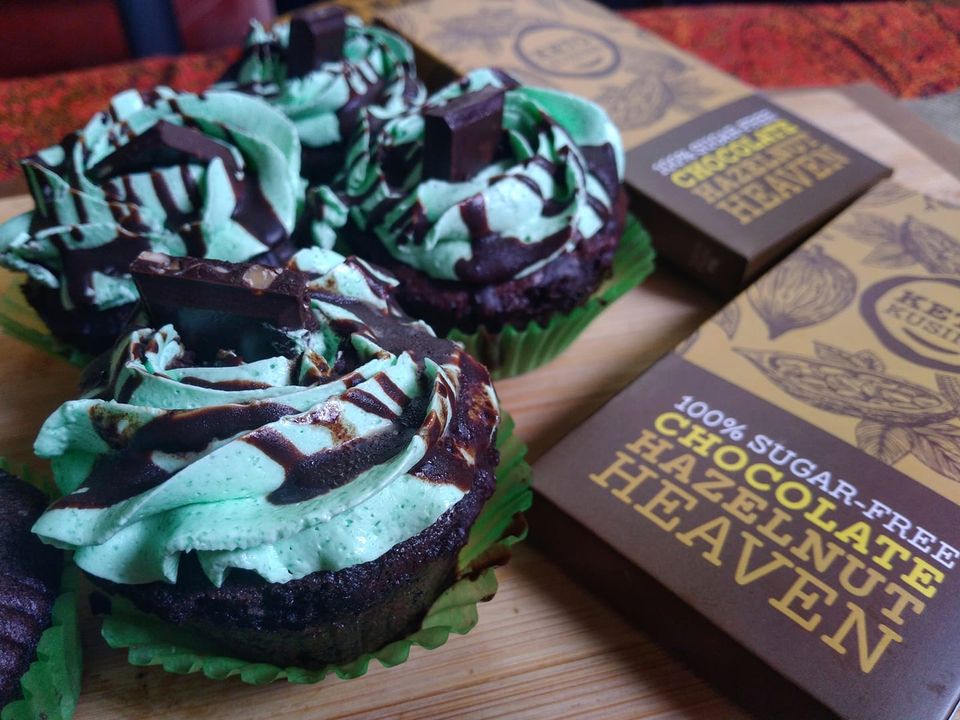 Sugar-free Choco Hazelnut Mint Cupcakes