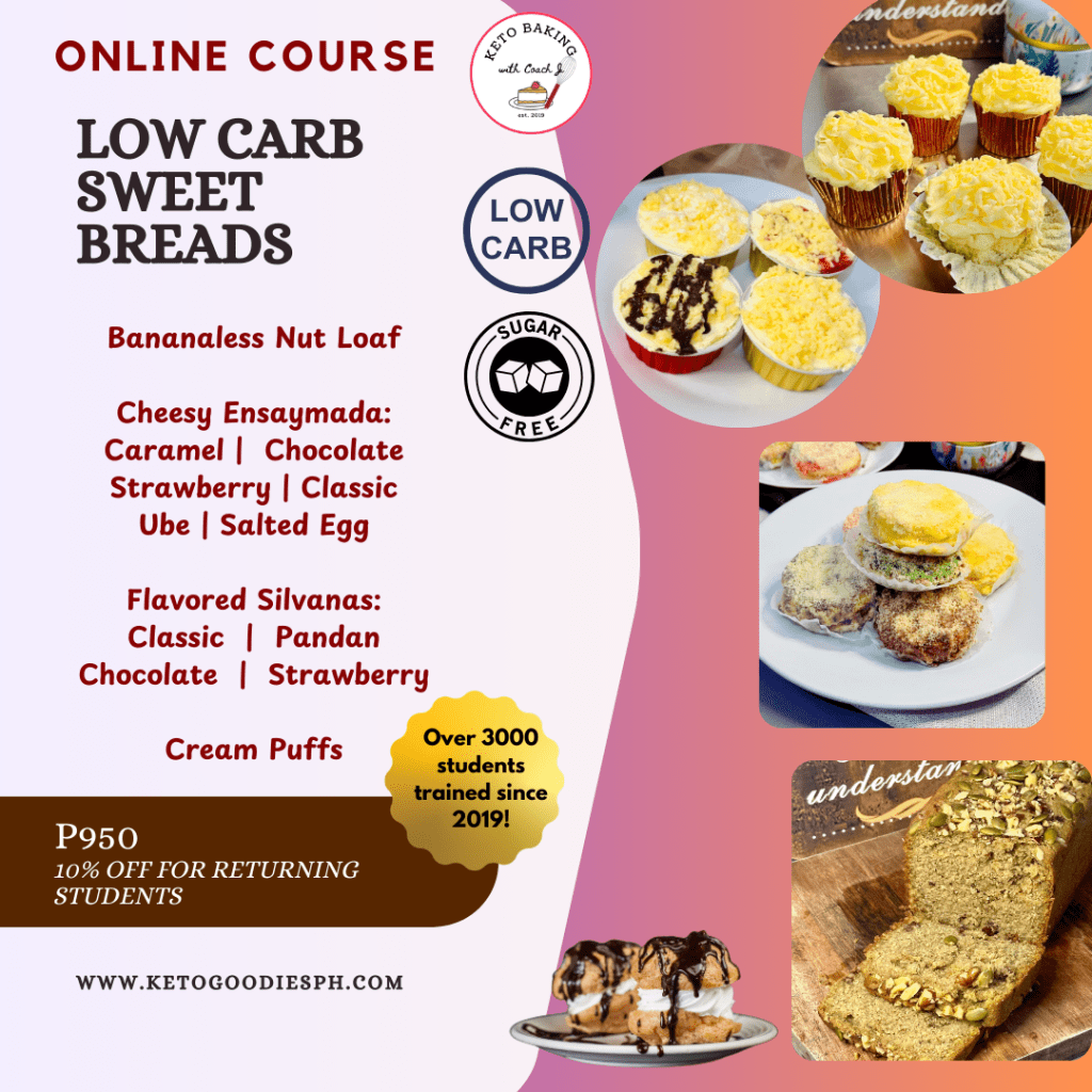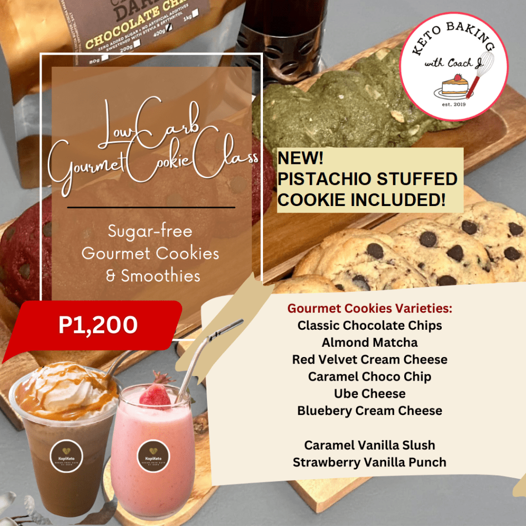 Join our exciting online low carb baking class and learn from the comfort of your own kitchen with Coach J! Anytime and anywhere! 🍪👩🍳 These goodies are also sold in our bakeshop: @Keto Goodies Ph & Kitchen